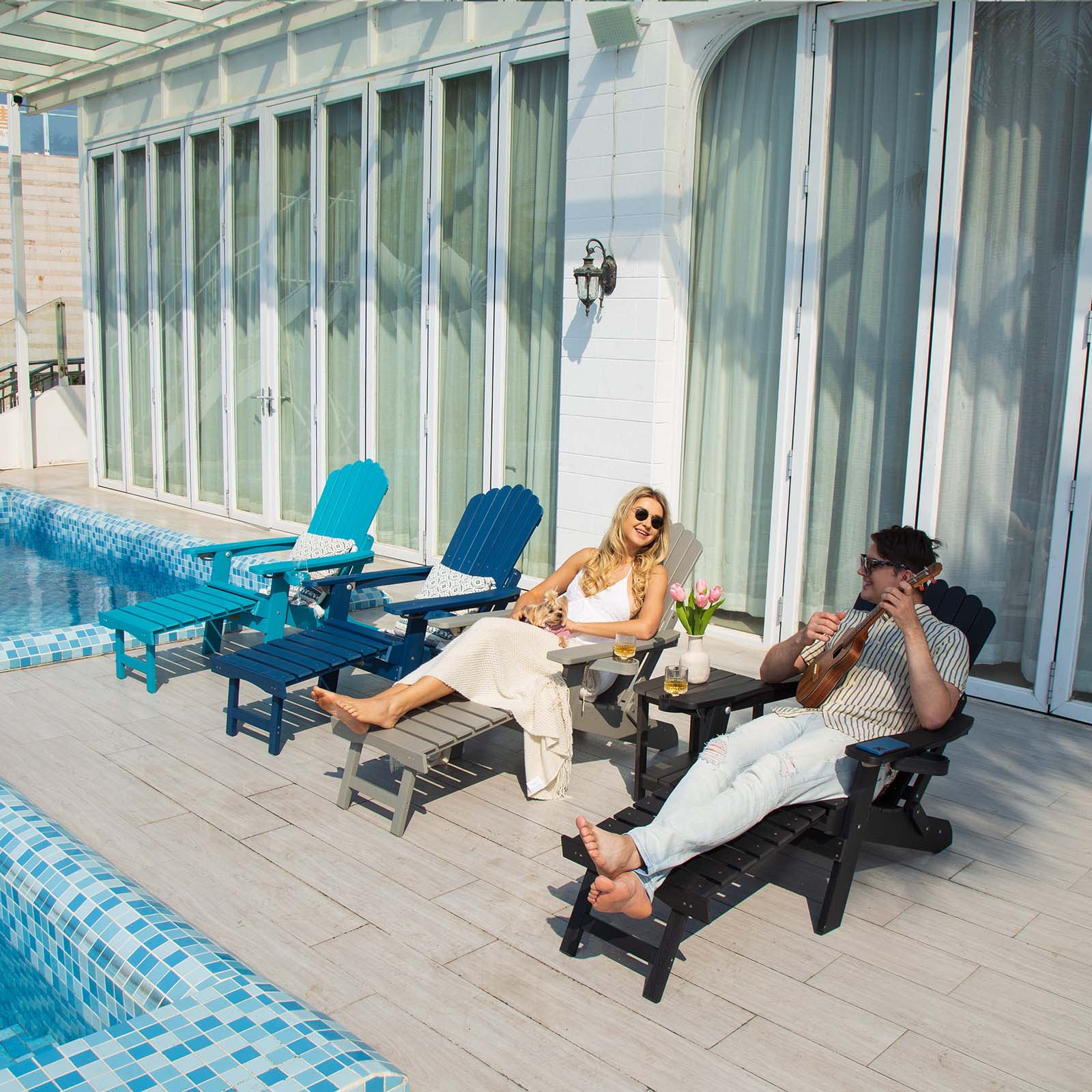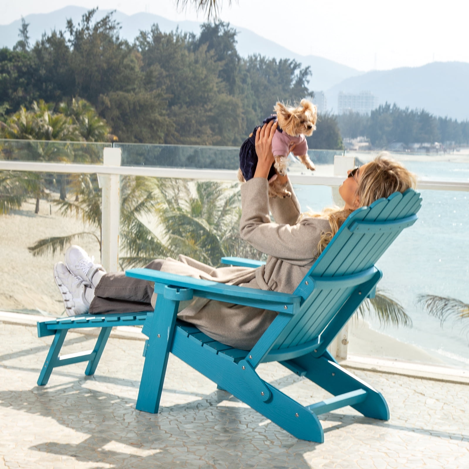 [Adjustable 5 Angles Backrest & Max 115%]: Ahead of Folding Adirondack chairs on the market, the backrest of our Adirondack chair provides 5 different backrest angles. You can easily switch whether you prefer an upright posture for reading or a reclined angle for soaking up the sun. The maximum angle can be adjusted to 115%, so that you experience the ultimate in relaxation. [Retractable Ottoman]:Attached ottoman to the traditional Adirondack chairs, saving you from purchasing an expensive extra footstool. Our built-in retractable footrest design provides good support for your feet and makes your body extremely relaxed. Stainless steel instead of plastic screws allows the footstool to be pulled out smoothly. Simply pull-in to retract the footrest, which hides beautifully in the chair when not in use. [Material of Plastic]: Plastic Material density 0.75, with a textured grain finish, composite, weather resistant, no paint retouching, low maintenance, more durable than wood. Small gaps in the backrest and large bottom seat, sufficient materials. 4.3-inch armrest width and 380 lbs load capacity can make anyone of any body type feel really comfortable. UV resistant and prevents fading, ensuring the outdoor chair maintains its vibrant color and appearance even with prolonged outdoor exposure. [Two Cup & Phone Holder]: With two integrated cup holders and mobile phone holder, the lounge chair allows you to keep your drinks close at hand and your device secure. Multiple colors available for matching your pool, porch, backyard, patio, terrace, balcony, lounge areas, around fire pits, poolside, at the beach. Great for lounging at BBQ or outdoor parties with family. [Foldable Design & Easy to Assemble]: This Adirondack chair with ottoman folds flat for easy storage and transportation, making it convenient to use and store when not in use, to make more room for your home! The parts are labelled well. Only partial assembly required. Just need to tighten screws to splice parts according to the manual included, hassle-free. A perfect gift for family!