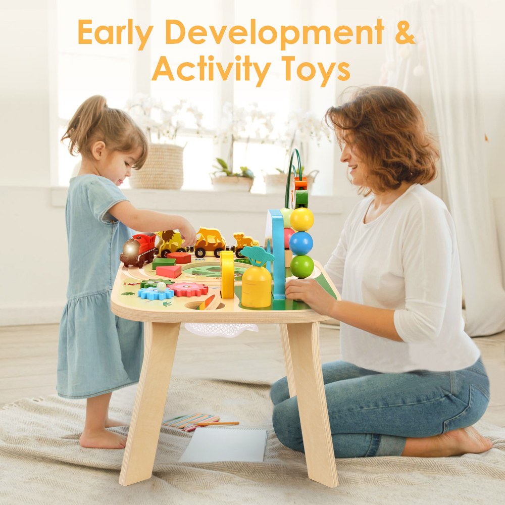 High-Quality Material: Made from natural wood with smooth edges, this toddler activity table is safe for children. It features non-toxic, water-based paint that won't peel, ensuring years of play