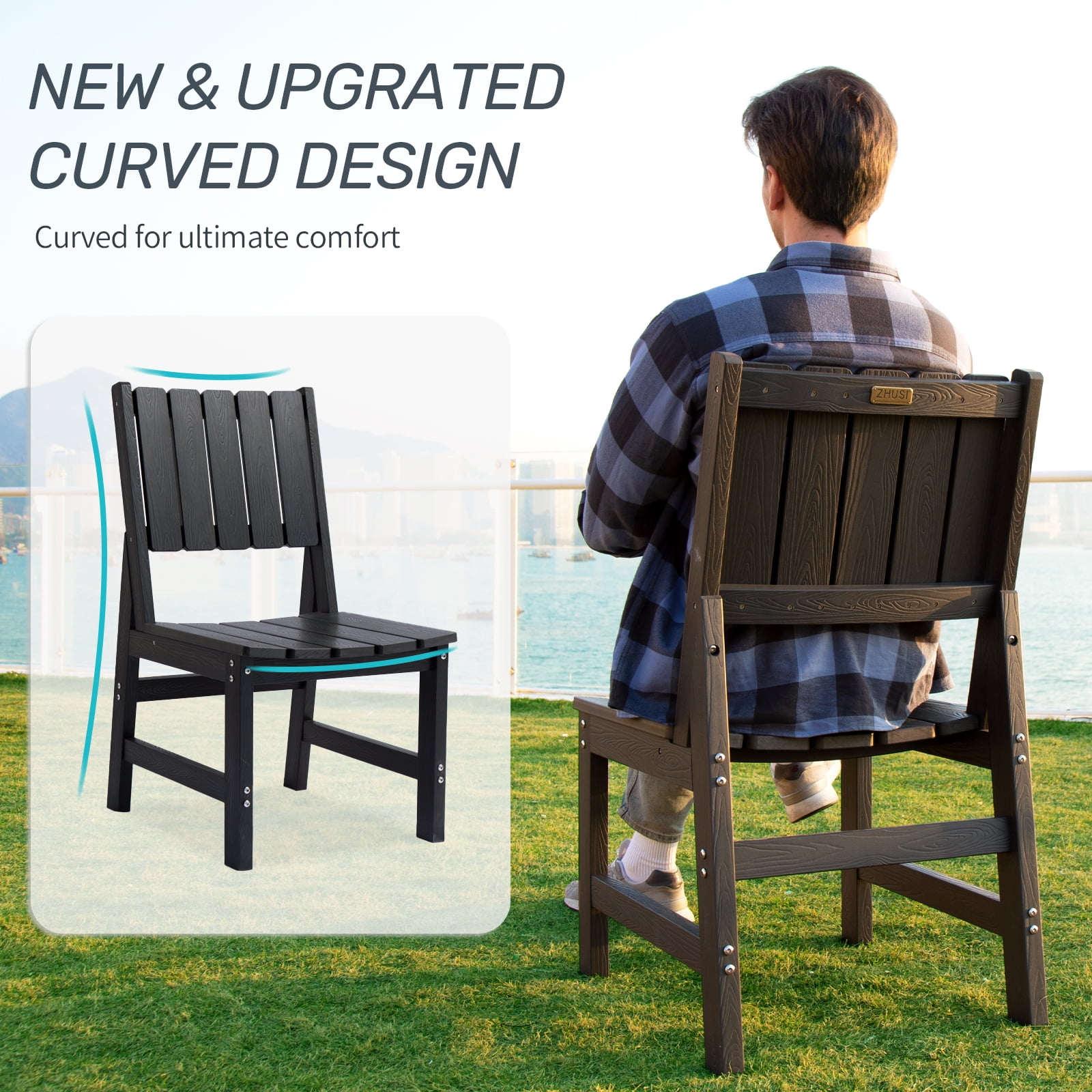 Ergonomic Side Dining Chair: Adopting scientific ergonomic principles, it can perfectly fit the curves of the human body and is designed to provide unparalleled comfort and support. Seat slat design keeps you cool even on hot summer days, allowing you to enjoy comfortable relaxing moments Easy to Assemble:The package comes with clear and detailed installation instructions and all necessary hardware, allowing you to set up your dining area quickly and easily. Note: Do not tighten the screws until finished Weather Resistance:The sturdy frame and high-quality plastic material ensure durability and reliability, withstanding all kinds of harsh weather and delivering long-lasting performance. And don't worry about things like rust, patio chairs are easy to clean with just soap and water, keeping them looking fresh with minimal effort. Indoor and Outdoor Use:The outdoor side chair is perfect for both outdoor environments and indoor spaces. The design takes into account the needs of different scenarios and is made of weather-resistant materials, which can withstand the effects of various weather conditions, including sun and rain, while maintaining good appearance and service life. For indoor use, the design blends well into modern home decor, making this chair set the ideal choice Customizable: Choose from single chairs to fit your family size or guest needs.